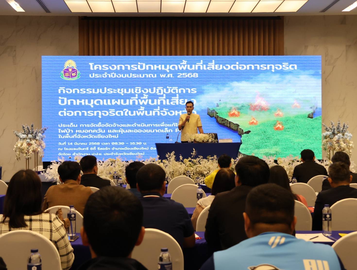 ทั้งนี้ ปัญหาการทุจริต เป็นปัญหาเรื้อรังที่เกิดขึ้นมาอย่างยาวนานในประเทศไทย และส่งผลต่อการค้า การลงทุน ทั้งภายในและต่างประเทศ ดังเช่น ผลการประเมินดัชนีการรับรู้การทุจริต(Corruption Perception Index: CPI) ประจำปี 2567 ประเทศไทยได้ 34 คะแนน จัดอยู่ในอันดับที่ 107 ของโลก และอยู่ในอันดับที่ 5 ของกลุ่มประเทศอาเซียน ในการนี้สังคมไทยยังคงส่งเสริมและดำเนินการให้คนภายในประเทศยังคงแสดงจุดยืนที่จะไม่ทนต่อการทุจริตต่าง ๆ อย่างต่อเนื่อง ดังนั้น เพื่อให้การดำเนินการสนับสนุนภารกิจด้านการป้องกันและแก้ไขปัญหาไฟป่าและหมอกควันดำเนินการไปด้วยความสุจริต สำนักงาน ป.ป.ช. ประจำจังหวัดเชียงใหม่ จึงได้จัดโครงการปักหมุดพื้นที่เสี่ยงต่อการทุจริตขึ้นในวันนี้ เพื่อตรวจสอบการกระทำโดยมิชอบด้วยกฎหมายหรือระเบียบที่เกี่ยวข้อง ทั้งการทุจริตในการดำเนินโครงการ หรือกิจกรรม ที่เกี่ยวกับการใช้งบประมาณในการแก้ไขปัญหาหมอกควันไฟป่าและฝุ่นละอองขนาดเล็ก PM2.5 เพื่อให้ทุกหน่วยงานที่มาร่วมงาน นำข้อมูลที่ได้รับจากการเข้าร่วมโครงการไปใช้เป็นแนวทางในการตรวจสอบระเบียบขั้นตอนต่างๆ เพื่อไม่ให้เกิดการผิดพลาดในการดำเนินการด้านการใช้งบประมาณ สร้างความเข้มแข็ง สร้างความโปร่งใส ในเรื่องการบริหารราชการ ดูแลพี่น้องประชาชนอย่างสุจริต มีคุณธรรม พร้อมเป็นหูเป็นตา เพื่อให้องค์กรทำงานได้อย่างถูกระเบียบและโปร่งใส ตรวจสอบได้