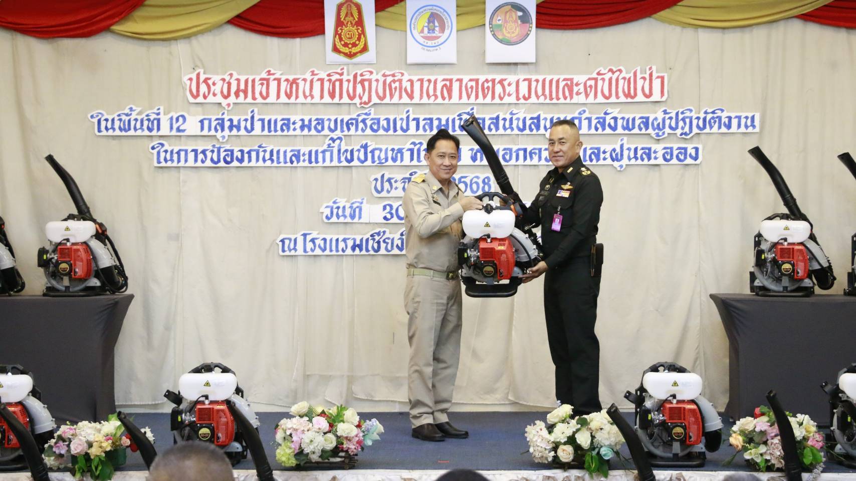 พลโท กิตติพงษ์ แจ่มสุวรรณ แม่ทัพภาคที่ 3 ในฐานะผู้อำนวยการศูนย์อำนวยการป้องกันและแก้ไขปัญหาไฟป่า หมอกควัน และฝุ่นละอองภาค 3 เป็นประธานเปิดการประชุมเจ้าหน้าที่ปฏิบัติงานลาดตระเวนและดับไฟป่า ในพื้นที่ 12 กลุ่มป่า ณ โรงแรมเชียงใหม่ภูคำ จังหวัดเชียงใหม่ พร้อมมอบเครื่องเป่าลมเพื่อสนับสนุนการปฏิบัติงานของกำลังพลในการป้องกันและแก้ไขปัญหาไฟป่า หมอกควัน และฝุ่นละออง ประจำปี 2568 โดยมีหน่วยงานที่เกี่ยวข้องเข้าร่วมอย่างพร้อมเพรียง